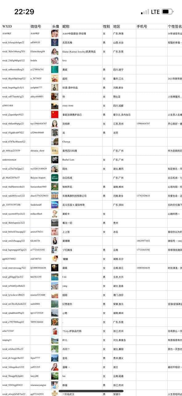 可以提取的信息有好友的ID、微信号、头像、昵称、地区
